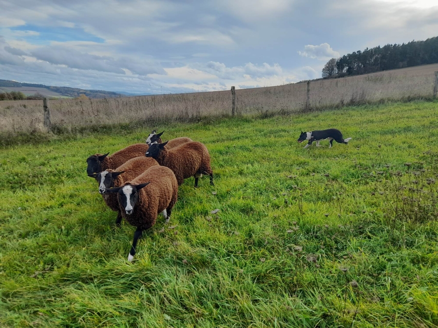 S myšlenkou na pořízení pomocníka na manipulaci ovcí jsme si začali pohrávat ihned co bylo nutné stádečko poprvé přemístit mimo naši stabilní pastvinu. Následoval výběr plemene, rozmýšlení jestli štěně, nebo už starší základně vycvičený pes. Pes nebo fenka. Padla volba na fenu vzhledem k samcům pastevců a tomu, že psík bude už starší. A tak jsme se dočkali a do naší rodiny přišel první malý pes - fenka border kolie Coco. Coco má výborný pracovní rodokmen.