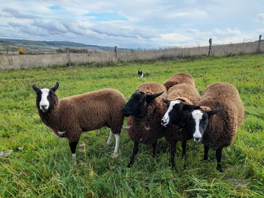 Neměla to u nás vůbec jednoduché. První dny jsme seznamovali se psy kolem domu a s chodem naší domácnosti. Ovce nebyly zvyklé na manipulaci psem, naopak jsou vůči psům dost odrzlé a suverénní, protože jsou zvyklé na jejich trvalou přítomnost a necítí od nich žádnou hrozbu. Zezačátku jsem potřebovali pomoc chovatele Coco a jeho ostřílenějších psů, bez toho bychom se dál nepohnuli. Dnes už naše ovce chápou, že bílý velký pes je kámoš, malý černý je "problém" a podle toho reagují a fungují. Coco také nabrala více zkušeností a je nám velkým pomocníkem.