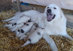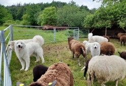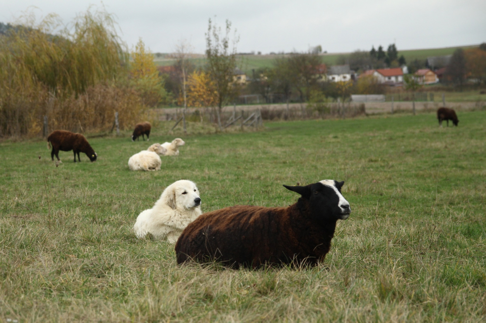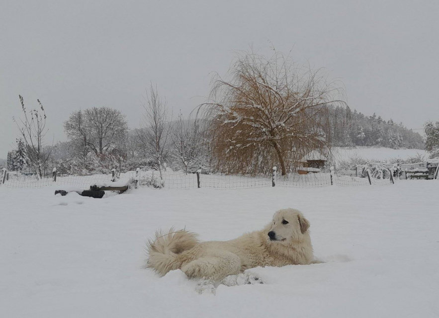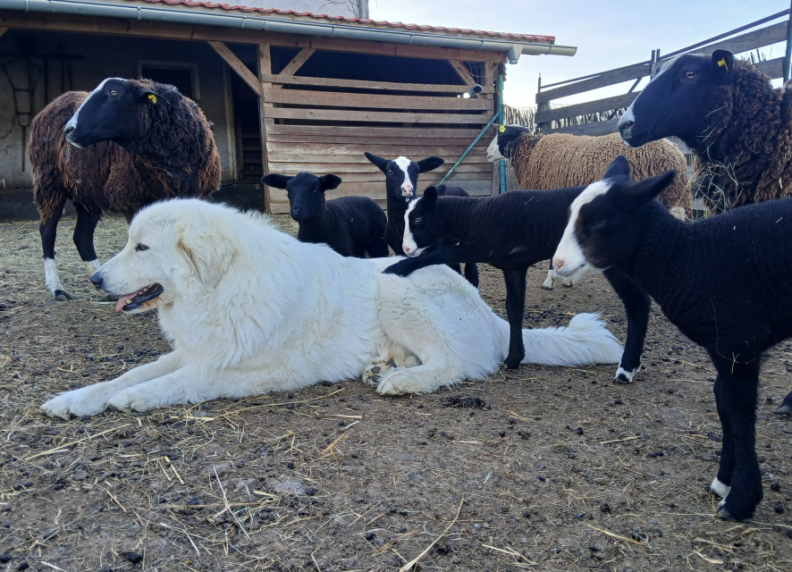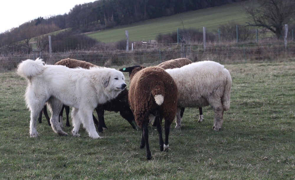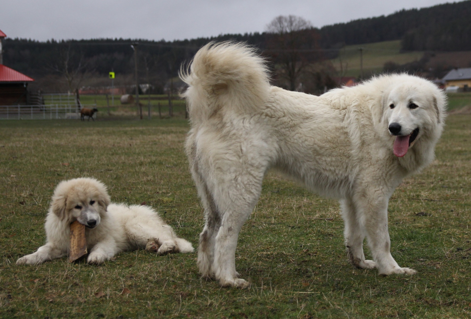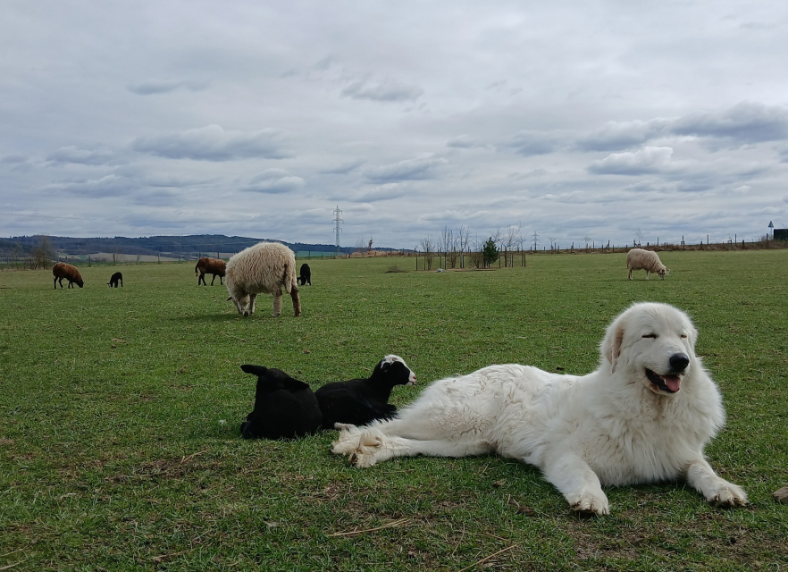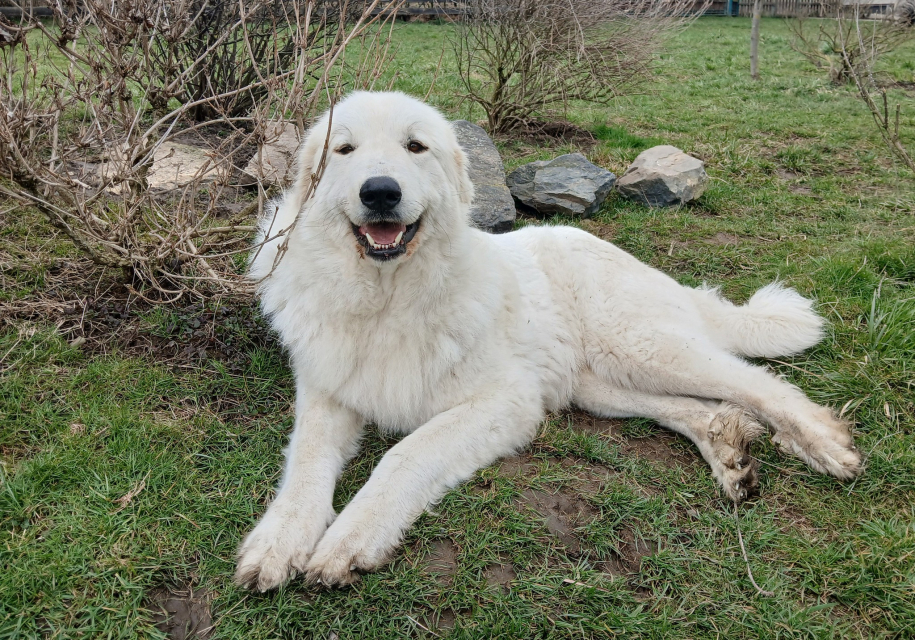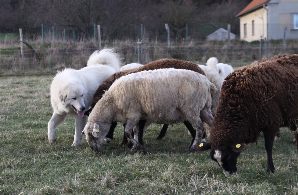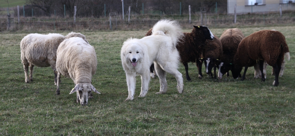 Elódie se vrátila do naší CHS z vážných rodinných důvodů majitelky. Po několika dnech u nás jsme věděli, že zůstane. Eli je exteriérově velmi pěkná fenka, v povaze milá, citlivá, velmi silně vázaná na stádo, přesto razantní a pozorná hlídačka. S bratrem Estatem vytvořili silně napojené duo a potvrzují tak teorie zkušených chovatelů o tom, proč je dobrá a výhodné používat k ochraně stád jedince vázané mezi sebou rodinnými vazbami.