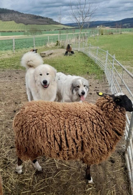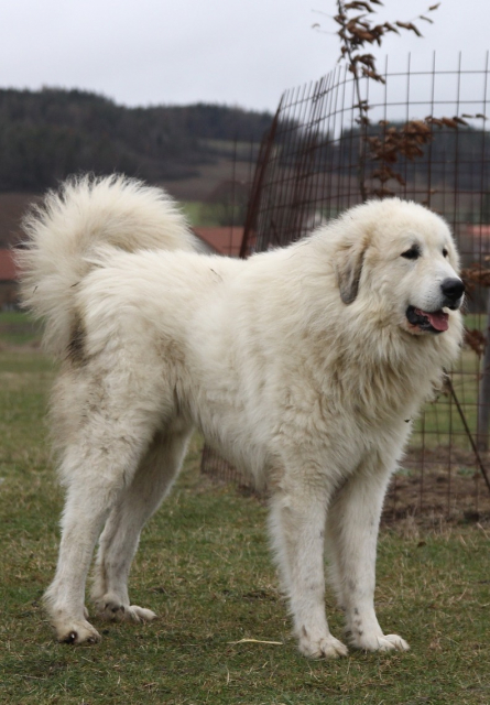 Estat zůstal plánovaně doma, jako potomek dvou našich zatím nejlepších jedinců (hodnoceno našimi kritérii ve vztahu k našemu cíli chovu). Je to mladý pes, odmala výborný a razantní hlídač, přitom klidný, neuštěkaný a jemný ke všemu svému. Svojí velikostí vzbuzuje zasloužený respekt. Bezproblémově a s chutí kryje.