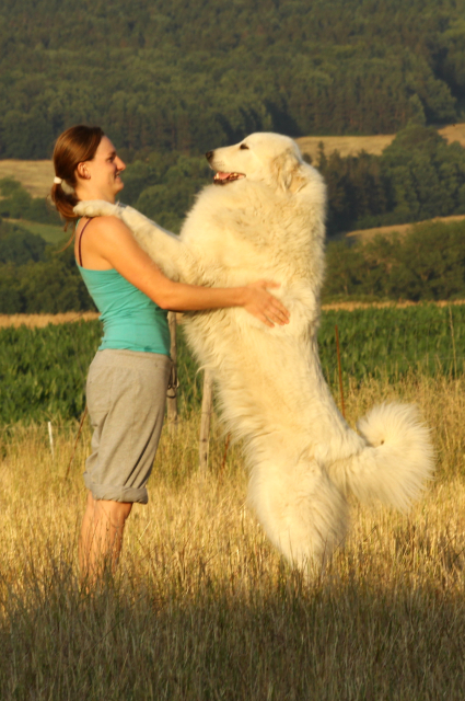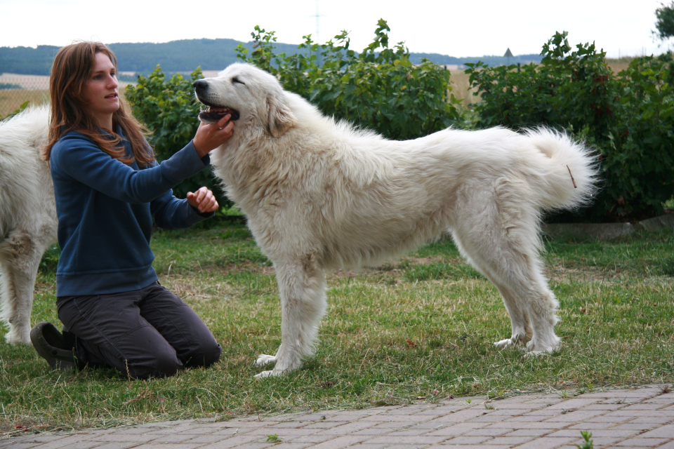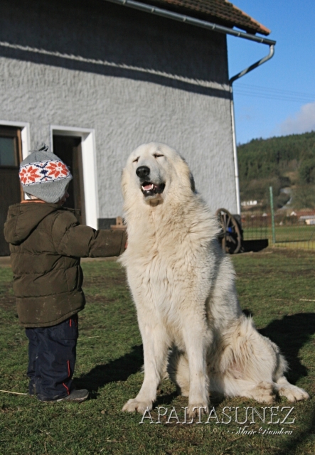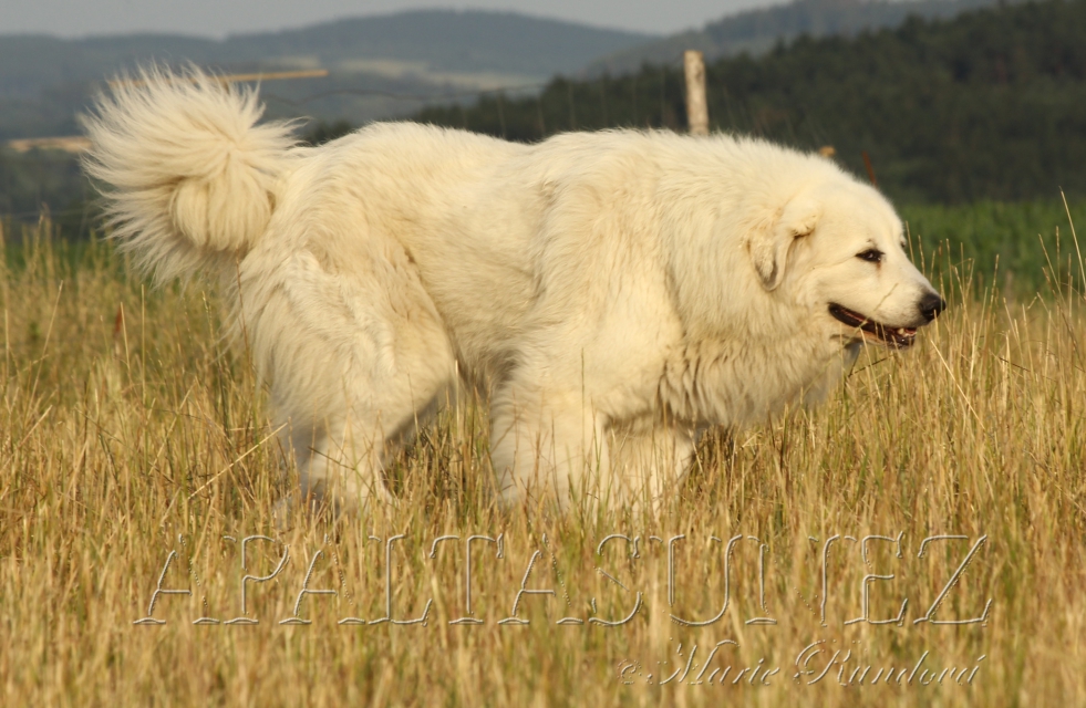 Exi se k nám dostala hrou osudu téměř ve třech letech. Navzdory jistým pochybnostem z naší strany, které s sebou změna majitele dospělého jedince takovéhoto plemene jistě nese, jsme ani na vteřinu nelitovali. Od první chvíle se chovala jako bychom k sobě patřili odjakživa. Během několika málo dnů si zvykla na změnu jazyka, oslovení a pokynů. Exí je první fena v naší rodině vůbec a plně naplnila popis jejich povahy. Během chvilky vysvětlila oboum psům, kdo je tady alfa, Amos k ní vzhlíží jako k bohyni a nechal by ji cokoli, když si to bude přát. S chlapy to umí perfektně, stačí jeden pohled, položení packy.. Stejně tak, jak je milá, je ale i drsná při hlídání, je nejostřejší hlídačkou na dvoře. Jednu chybku ale přece jenom má - šíleně krade! :-D Neexistuje místo, kde by se před ní schoval kousek jídla ať je to sebevíc vysoko nebo hluboko. Proto už nás nechávají v klidu veškeré podivné zvuky a rány, které sem tam odněkud vyjdou. To jen na Exu zase spadlo kolečko, prkna, nebo jí zůstala někde šprajclá hlava když zacítila kousek žvance. Exi je úžasné stvoření a nikdy nepřestanu děkovat osudu, že nám ji poslal.